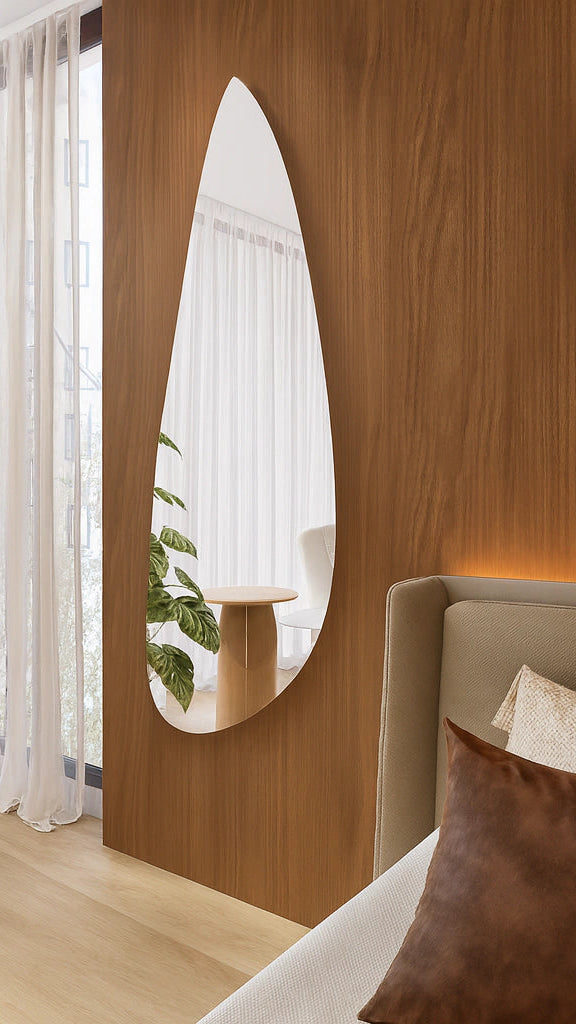 Lustrzane organiczne lustro stojące z dotykowym sterowaniem LED – nowoczesny design z regulowaną jasnością